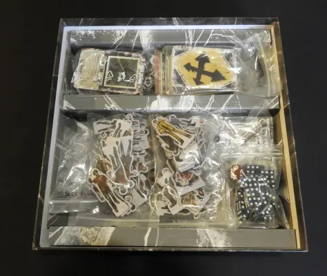 A 60 db műanyag talpból 7 hiányzik (a játékmenetet nem befolyásolja), illetve a kék moráljelölő korong elveszett, ez 3D nyomtatással pótolva. Mindezt leszámítva patika állapotú játék (a játékszabályon látszik csak, hogy forgatva volt).